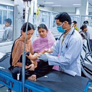 Providing free healthcare services, organizing health camps, establishing hospitals, and promoting hygiene and sanitation programs.
